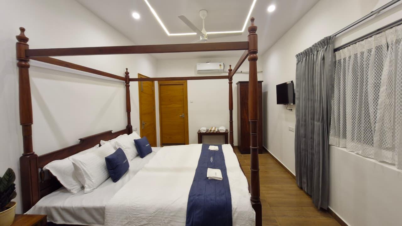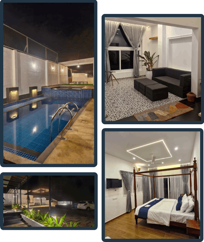 Wake up to the sound of birds, breathe in the cool mountain breeze, and enjoy a delicious complimentary breakfast made with fresh local flavors. Spend your day lounging by the pool, soaking in sunshine, or exploring Wayanad’s breathtaking landscapes just minutes away from the property.